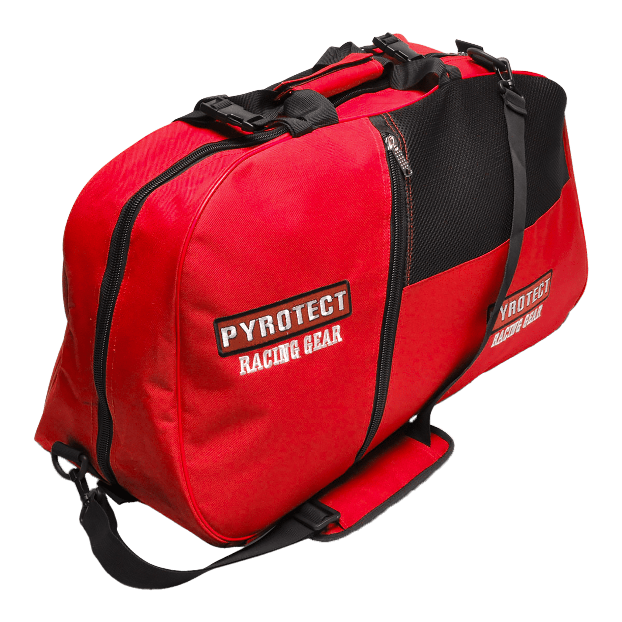 Pyrotect’s specialized three compartment equipment bags are comprised of high-quality heavy-duty Nylon material that provides tear, puncture, and moderate water-resistance. Mesh made of moderately stretchy Nylon is strategically placed to increase available space inside the side pockets. Subsequently, the large center compartment has the capability to hold a full set of Pyrotect’s safety equipment and one full face helmet, to increase capacity another 25%, the bags boast a zip up half-mesh pocket on each side. Additionally, the bags are equipped with three convenient options for various carrying styles, which includes the standard dual strap handle that can be combined with a velcro wrap for improved single-hand grip, over-the-shoulder carrying strap with a padded shoulder piece for improved comfort, and unique backpack-style padded straps along with padded back support for a comfortable hands-free way to haul safety equipment!