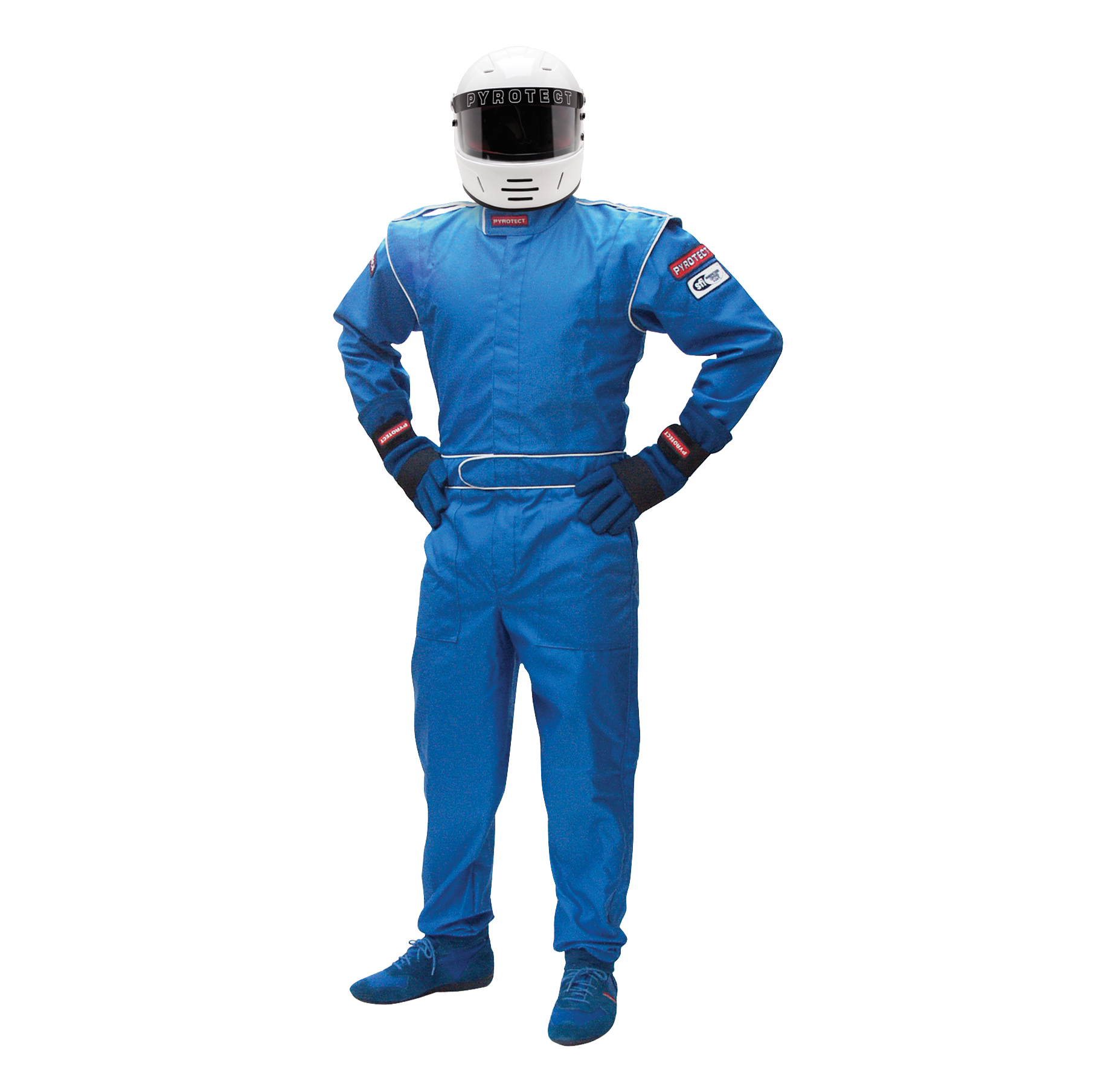 Stylish, Professional Quality and Comfortable, the PYROTECT Jr Deluxe Two Layer, SFI 5, One Piece Suit, manufactured with a Nomex outer layer and SFI Rated Inner Liner offers the protection you would expect from an SFI-5 rated Multiple Layer Suit. The JS200 offers the following features: