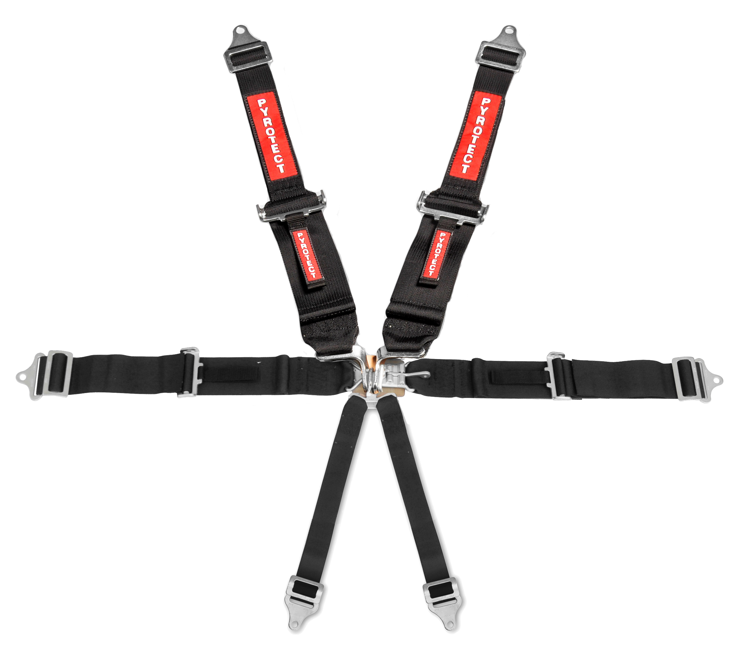 SFI 6 Point Latch Link Harness 2″ Shoulder 3″ Belt Black Pull Up