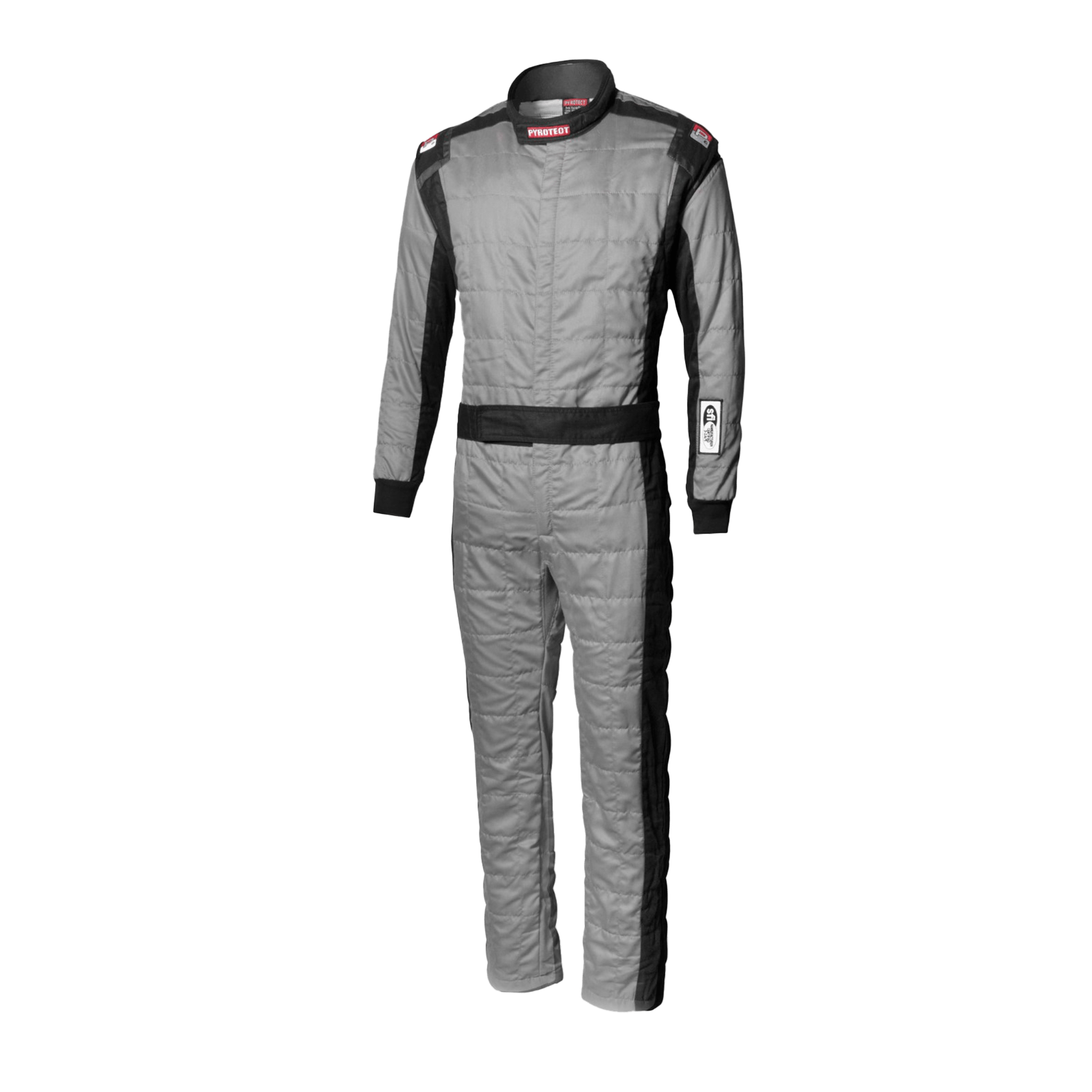 Manufactured with Lightweight NOMEX material for comfort and improved heat dissipation, Stylish accent piping with 360 degree vented arm attachments for increased movement and a soft knit-lined collar. More features include a vented waist expansion panel for increased movement, better comfort and fit, and increased airflow to help keep you cooler in the heat. Hidden slash pockets for storing items while in the pits and hidden boot cuffs that allow material to layer over your shoe for added fire protection. Â The PYROTECT Sportsman Deluxe, SFI 3.2A/5, One Piece Drivers Suit is manufactured using NOMEX material with: